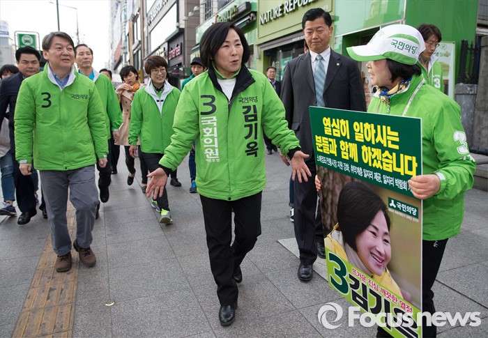 (서울=포커스뉴스) 총선 선거운동이 공식적으로 시작된 31일 오전 김기옥 국민의당 강북갑 후보가 안철수 상임공동 대표와 서울 강북구 수유동에서 선거 유세를 하고 있다.