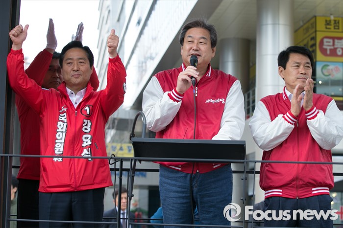 (서울=포커스뉴스) 4.13 총선 공식선거운동이 시작된 31일 오전 서울 구로구 구로디지털단지역 인근 한 대형마트 앞에서 김무성(가운데) 새누리당 대표가 강요식(왼쪽) 구로을 후보 지원유세를 하고 있다.