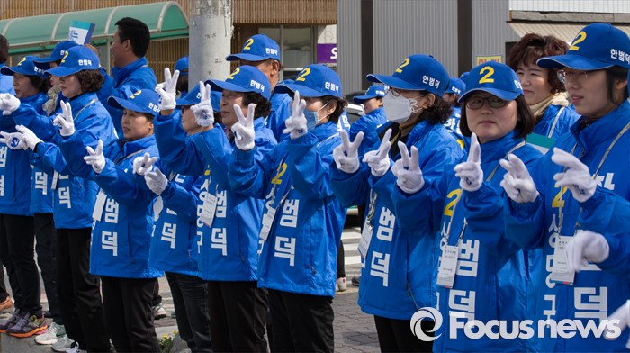 (청주=포커스뉴스) 20대 국회의원 선거운동이 시작된 31일 오전 충북 청주시 상당공원사거리에서 한범덕 후보 선거운동원들이 지지를 호소하고 있다.