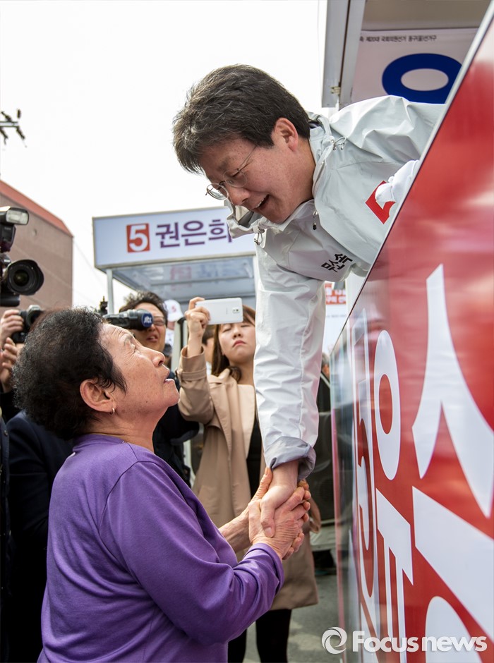 | △ 지지자와 악수하는 무소속 유승민 후보 |