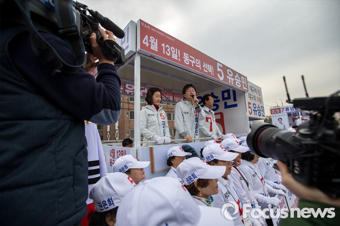 (대구=포커스뉴스) 무소속 대구 동구을 유승민 후보가 31일 오전 대구 동구 공항교에서 열린 선거운동 출정식에 참석해 출정 각오를 발표하고 있다.