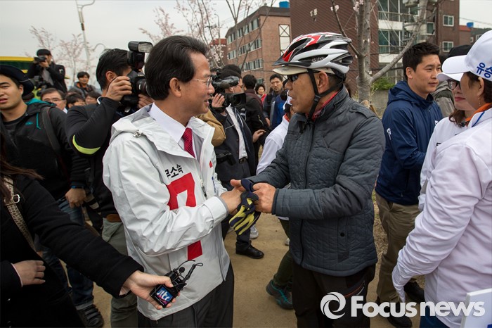 (대구=포커스뉴스) 무소속 대구 동구갑 류성걸 후보가 31일 오전 대구 동구 공항교에서 열린 선거운동 출정식에 참석해 지지자와 대화를 나누고 있다.