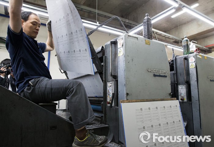 (파주=포커스뉴스) 제20대 총선 선거운동이 공식적으로 시작된 31일 오전 경기도 파주 한 인쇄소에서 직원이 투표용지 평판을 교체하고 있다.