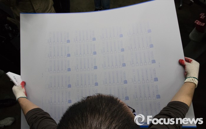 (파주=포커스뉴스) 제20대 총선 선거운동이 공식적으로 시작된 31일 오전 경기도 파주 한 인쇄소에서 직원이 투표용지 평판을 확인하고 있다.