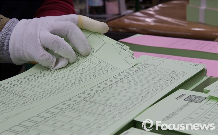 (파주=포커스뉴스) 제20대 총선 선거운동이 공식적으로 시작된 31일 오전 경기도 파주 한 인쇄소에서 직원이 투표용지를 인쇄해 분류작업을 하고 있다.