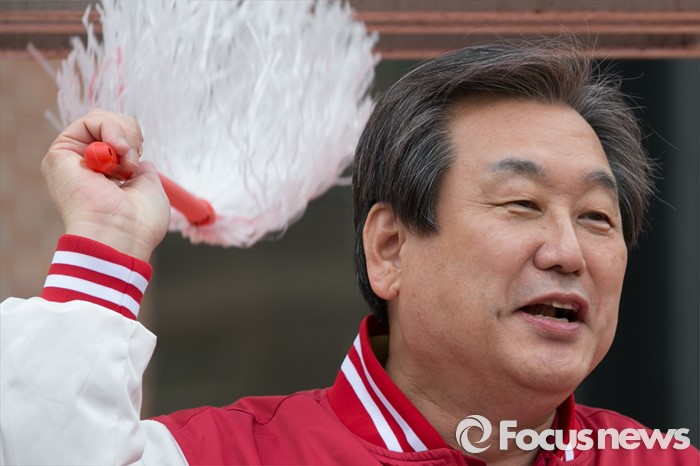 (서울=포커스뉴스) 4.13 총선 공식선거운동이 시작된 31일 오전 서울 마포구 아현시장에서 김무성(왼쪽) 새누리당 대표가 안대희 마포갑 후보와 함께 유세 차량에 올라, 먼지털이를 들고 웃고 있다.