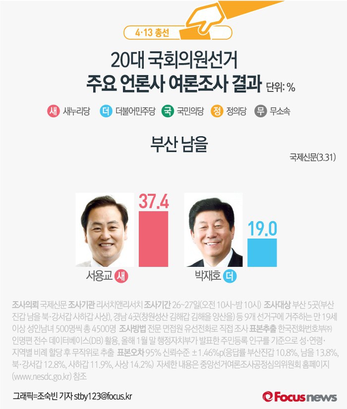 | △ [그래픽] 4.13총선 부산 남을 여론조사 결과 |
