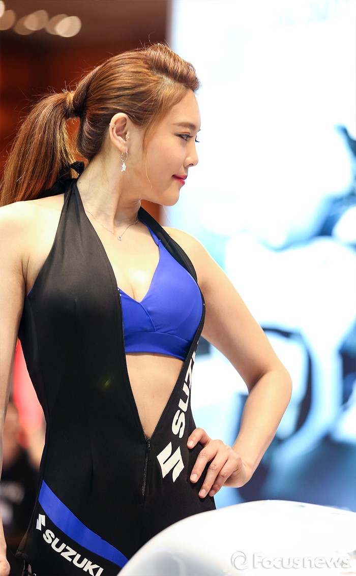 (서울=포커스뉴스) 31일 오전 서울 강남구 코엑스 D홀에서 열린 '2016 서울 모터사이클쇼' 에 참여한 스즈키 부스의 한 모델이 포즈를 취하고 있다.