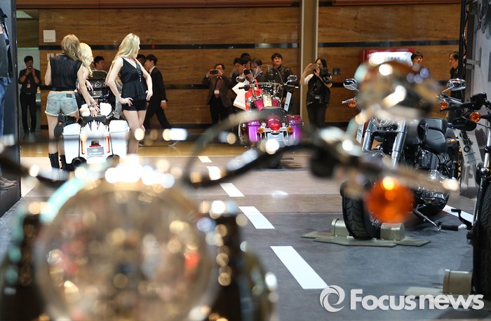 (서울=포커스뉴스) 31일 오전 서울 강남구 코엑스 D홀에서 열린 '2016 서울 모터사이클쇼' 에 할리데이비슨 부스의 모델들이 포즈를 취하고 있다.