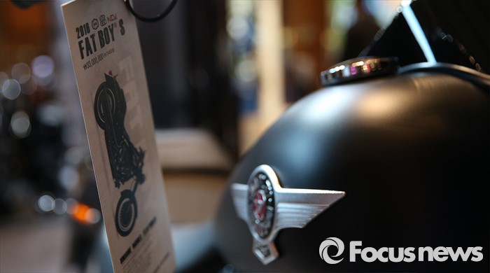 (서울=포커스뉴스) 31일 오전 서울 강남구 코엑스 D홀에서 열린 '2016 서울 모터사이클쇼' 에 참여한 할리데이비슨 부스에 전시된 FAT BOY'S 모습.