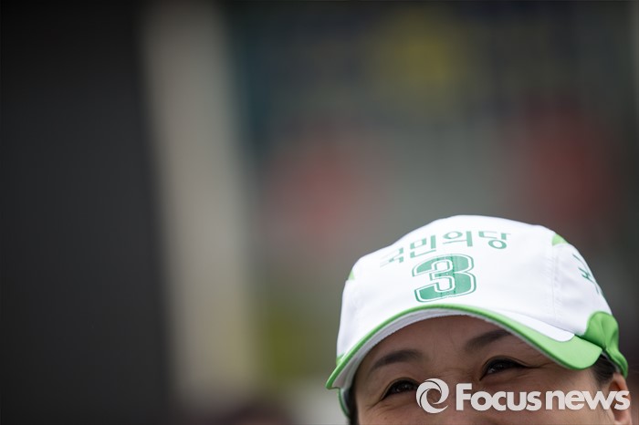 | △ 기호 3번... 모자 쓴 국민의당 봉사자 |