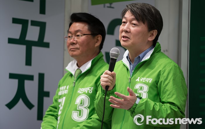 (서울=포커스뉴스) 총선 선거운동이 공식적으로 시작된 31일 오후 안철수 국민의당 상임공동대표가 서울 영등포구 여의도백화점 앞에서 김종구 영등포을 후보 지원 유세를 하고 있다.