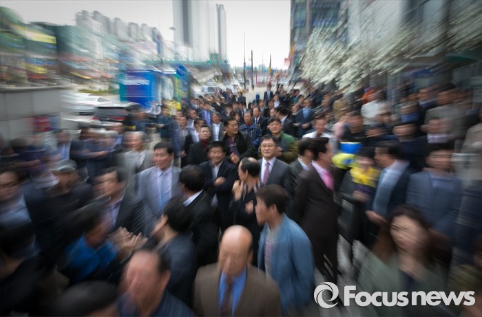 (안산=포커스뉴스) 20대 총선 공식선거 운동이 시작된 31일 오후 경기도 홈플러스 안산고잔점 앞에서 시민 및 지지자들이 더불어민주당 안산 집중유세를 지켜보고 있다.