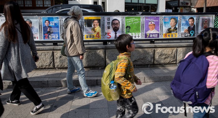 (서울=포커스뉴스) 4·13 총선의 본격적인 선거운동이 시작된 31일 오후 서울 종로구 경복궁역에 부착된 선거벽보 앞을 시민들이 지나가고 있다.