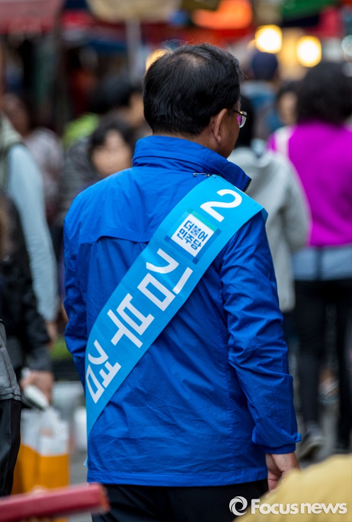 (대구=포커스뉴스) 더불어민주당 대구 수성구갑 김부겸 후보가 31일 오후 대구 수성구 신매시장을 방문해 유권자들에게 한 표를 호소 하고 있다.
