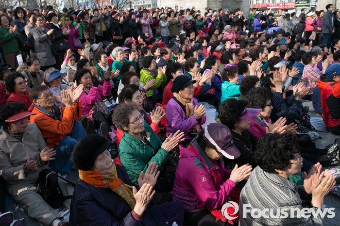 (서울=포커스뉴스) 4.13 총선 공식선거운동이 시작된 31일 오후 서울 서대문구 독립문공원에서 시민들이 이성헌 새누리당 서대문갑 후보의 출정식을 지켜보며 박수 치고 있다.