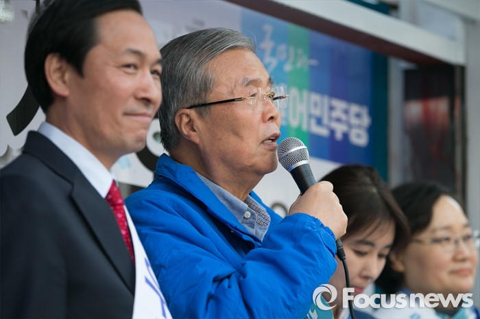 (서울=포커스뉴스) 20대 총선 공식선거 운동이 시작된 31일 오후 서울 신촌 유플렉스 앞에서 김종인(왼쪽 두번째) 더불어민주당 비대위 대표 겸 선대위원장이 우상호(왼쪽 첫번째) 서대문갑 후보의 지지를 호소하고 있다.
