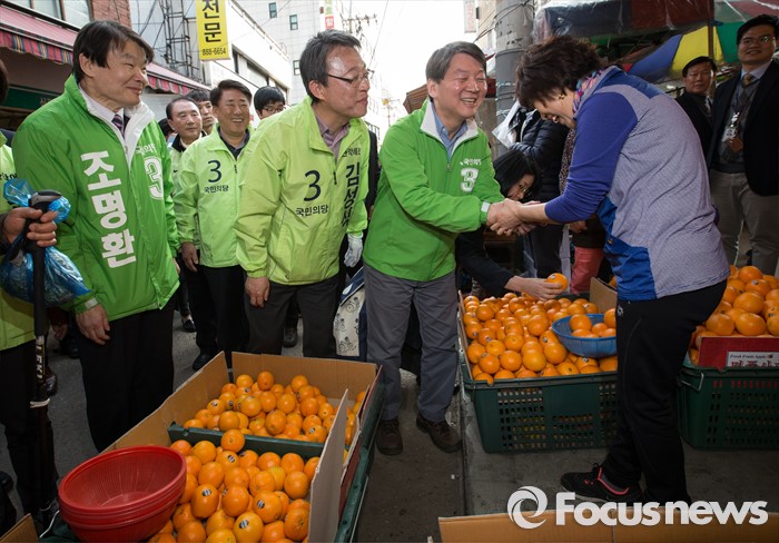 (서울=포커스뉴스) 총선 선거운동이 공식적으로 시작된 31일 오후 안철수 국민의당 상임공동대표가 서울 관악구 관악플라자 옆 시장에서 김성식 관악갑 후보 지원 유세를 하고 있다.