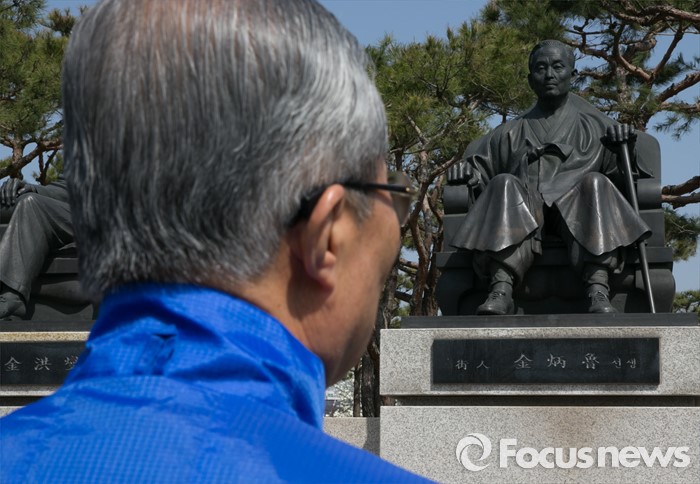 | △ 조부 동상 바라보는 김종인 |