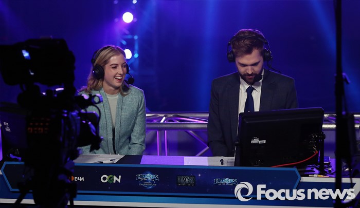 (서울=포커스뉴스) 1일 오전 서울 송파구 올림픽공원 올림픽홀에서 열린 '2016 히어로즈 오브 더 스톰 스프링 챔피언십' 개막식에 참여한 중계진이 관련 준비를 하고 있다.