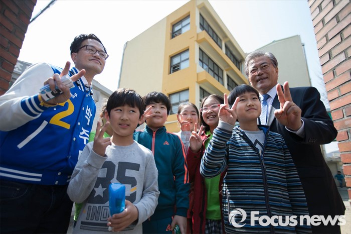 (서울=포커스뉴스) 1일 오후 문재인 전 더불어민주당 대표가 서울 은평구 역촌노인복지회관 인근에서 박주민 은평갑 후보와 함께 유세를 하고 있다.