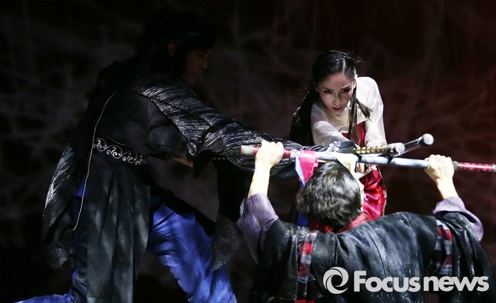 (서울=포커스뉴스) 1일 오후 서울 중구 정동극장에서 열린 2016 상설공연 '가온세상의 시작' 프레스콜 행사에 참여한 배우들이 주요 장면을 시연하고 있다.