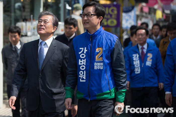 | △ 후보들 지원하며 거리유세 나선 문재인 전 대표 |