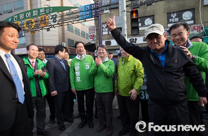 (인천=포커스뉴스) 안철수 국민의당 상임공동대표가 1일 오후 인천시 부평구 부평 4동에서 문병호 부평구갑 후보 지원 유세를 하던 중 한 지지자가 파이팅을 외치고 있다.