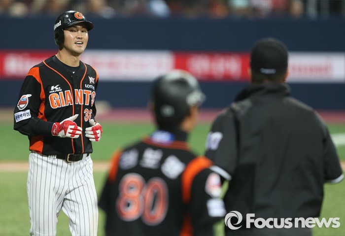 (서울=포커스뉴스) 1일 오후 서울 구로구 고척스카이돔에서 열린 2016 타이어뱅크 프로야구 개막전 넥센 히어로즈와 롯데 자이언츠의 경기 8회초 2사 상황 롯데 박종윤이 파울 플라이 아웃을 당하자 아쉬운 표정을 짓고 있다.