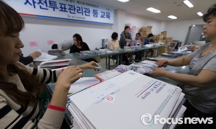 (서울=포커스뉴스) 2일 오후 서울 성북구 선거관리위원회에서 관계자들이 가정으로 발송될 제20대 국회의원 선거 공보물을 정리하고 있다.