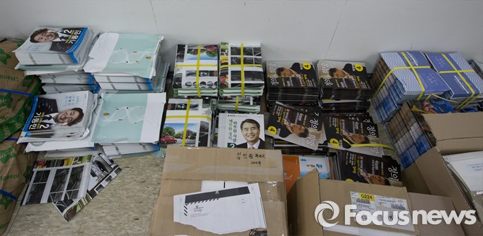 (서울=포커스뉴스) 2일 오후 서울 성북구 선거관리위원회에 가정으로 발송될 제20대 국회의원 선거 공보물이 놓여져 있다.