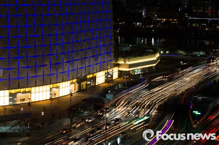 | △ 파랗게 물든 롯데월드타워 외벽 |