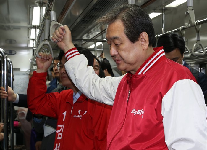 | △ 지하철 이용하는 김무성 |