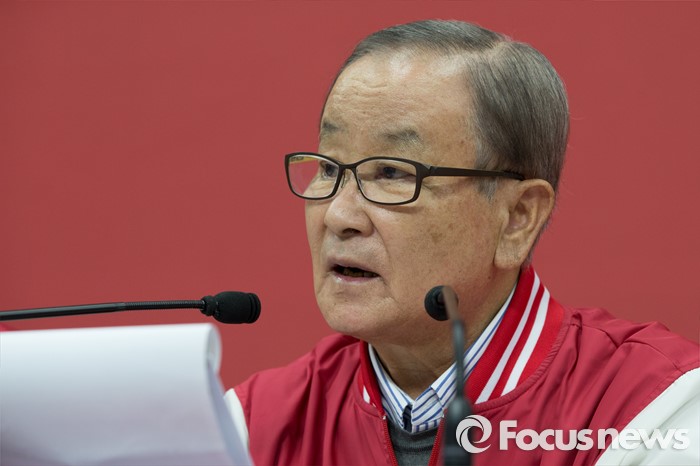 (서울=포커스뉴스) 강봉균 새누리당 공동선대위원장이 3일 오전 서울 영등포구 새누리당 당사에서 경제정책 3·4호 공약을 설명하고 있다.