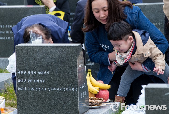 (제주=포커스뉴스) 3일 오전 제주 4ㆍ3 평화공원에서 열린 제68주년 4ㆍ3희생자 추념식에 참석한 시민들이 위령비 앞에서 예를 올리고 있다.
