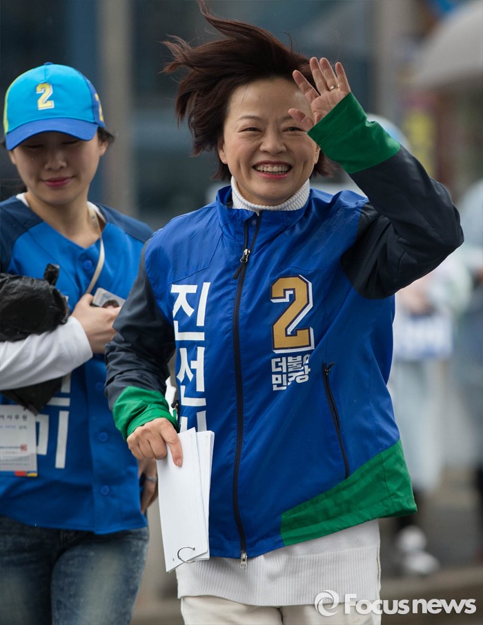 (서울=포커스뉴스) 선거운동이 시작되고 첫 주말을 맞은 3일 오후 문재인 전 더불어민주당 대표가 서울 강동구 암사시장에서 진선미 더불어민주당 강동구갑 후보와 합동유세를 하고 있다.