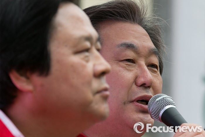 (창원=포커스뉴스) 김무성 새누리당 대표가 4일 오전 경남 창원시 성산구 가음정시장 앞에서 강기윤 창원시성산 후보 지원유세를 하고 있다.