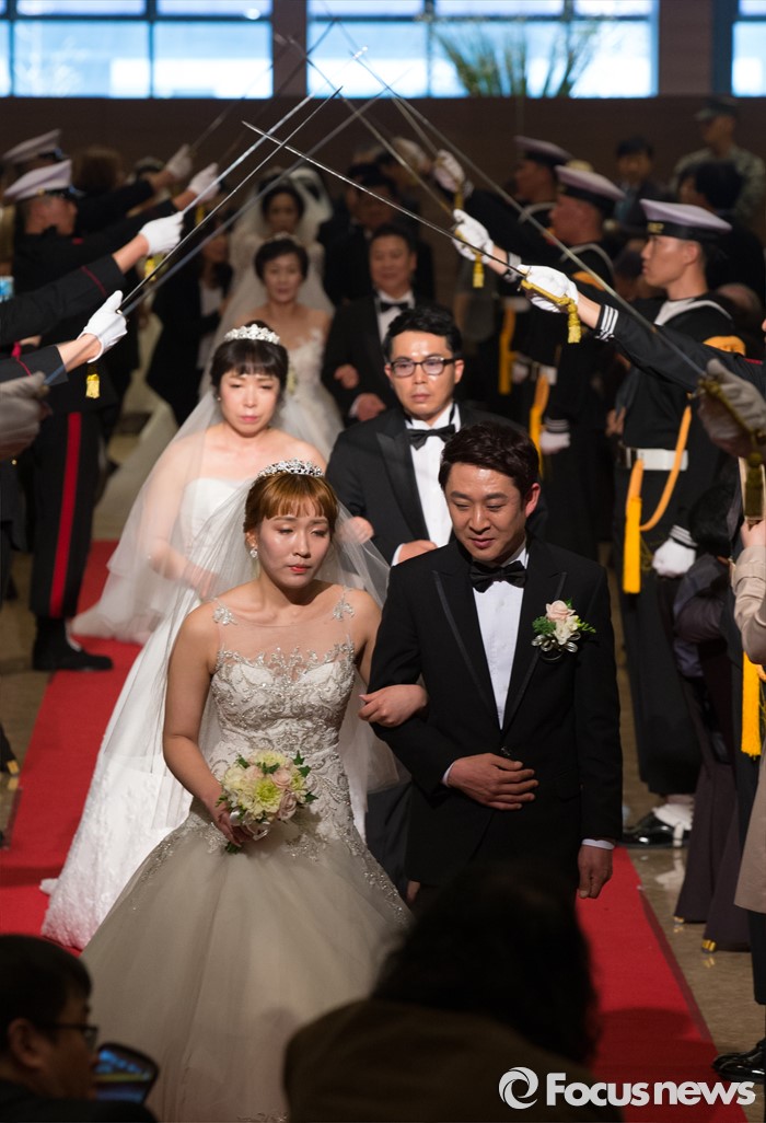 (대전=포커스뉴스) 4일 오전 대전 유성구 호텔ICC에서 열린 제18회 대전장애인자활실천대회 및 합동결혼식에서 신랑과 신부가 입장하고 있다.
