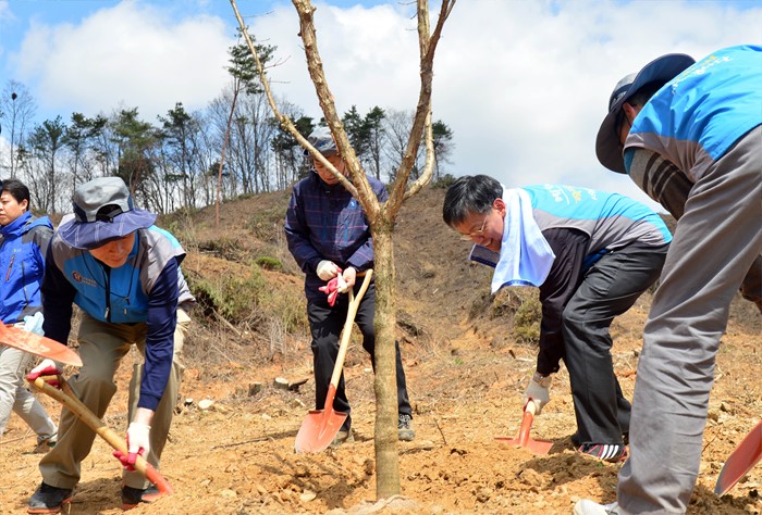 (세종=포커스뉴스) 최상목 기획재정부 차관이 제71회 식목일을 맞아 4일 세종시 연서면 신대리 야산에서 열린 나무심기 행사에 참석해 이팜나무 묘목을 심고 있다. <사진제공=기획재정부>