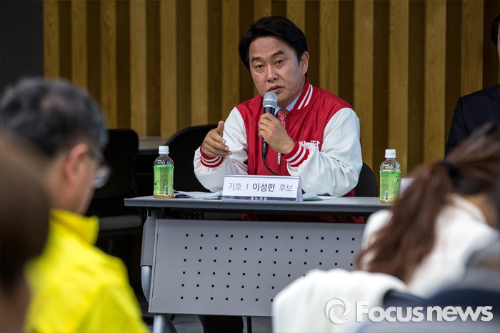 (서울=포커스뉴스) 새누리당 서대문갑 이상헌 후보가 4일 오후 서울 서대문구 연세대학교에서 열린 '제20대 국회의원 선거 서대문갑 후보자 토론회'에 참석해 공약 발표를 하고 있다.