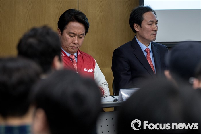 (서울=포커스뉴스) 새누리당 서대문갑 이상헌(왼쪽) 후보와 더불어민주당 서대문갑 우상호 후보가 4일 오후 서울 서대문구 연세대학교에서 열린 '제20대 국회의원 선거 서대문갑 후보자 토론회'에 참석 하고 있다