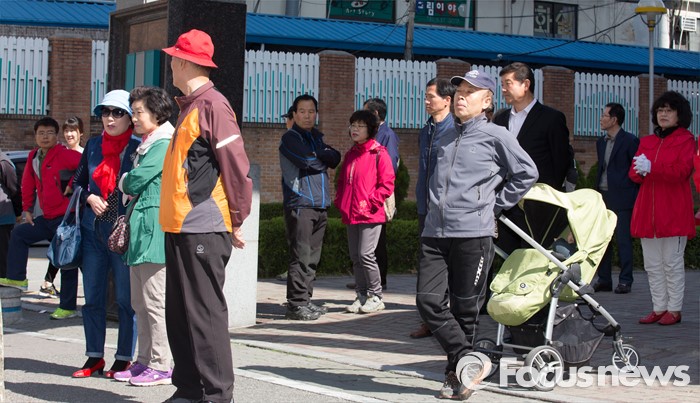 (대전=포커스뉴스) 5일 오전 대전 서구 한민시장 일원에서 시민들이 김무성 새누리당 대표 최고위원의 지지호소를 듣고 있다.