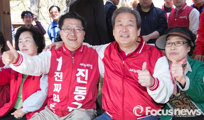 (대전=포커스뉴스) 김무성 새누리당 대표가 5일 오전 대전 유성구 족욕체험장에서 족욕을 하며 진동규 후보의 지지를 호소하고 있다.