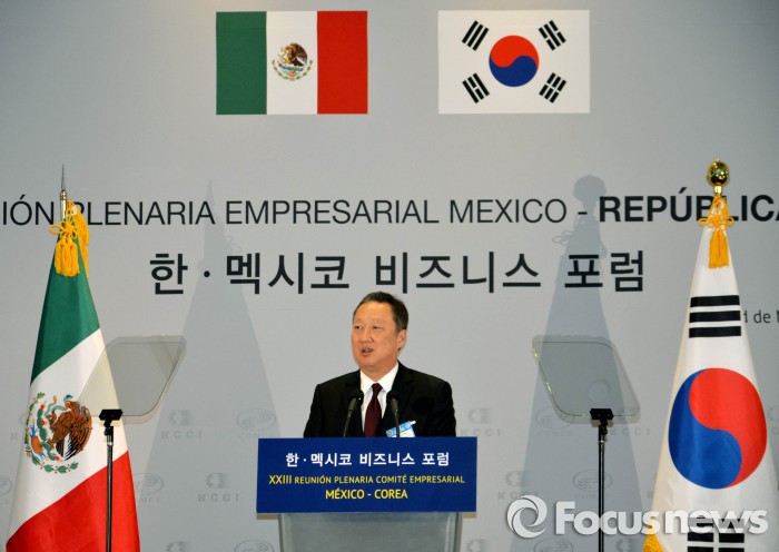 박용만 대한상의 회장은 "멕시코 경제발전에 한국은 진정한 친구를 뜻하는 '아미고'가 될 것"이라며 양국 간 FTA 협상의 조속한 재개를 강조했다.