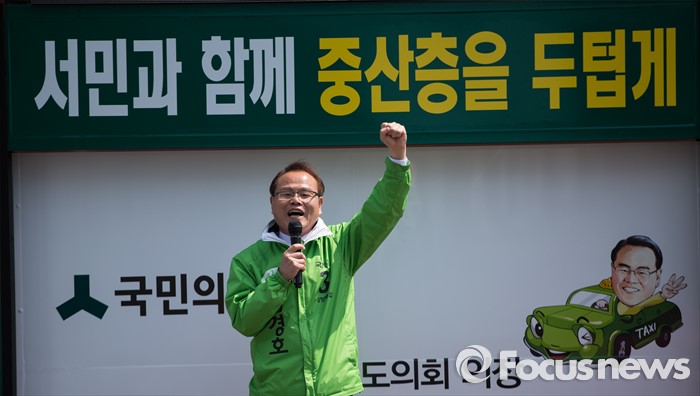 (의정부=포커스뉴스) 김경호 국민의당 의정부갑 후보가 5일 오후 의정부시 태평로 제일시장 앞에서 선거 유세를 하고 있다.