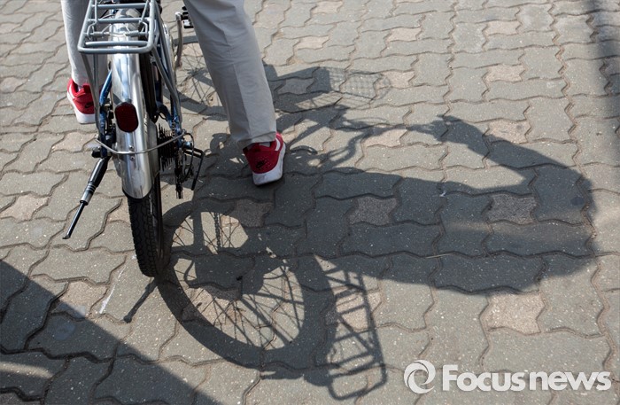 (서울=포커스뉴스) 정두언 새누리당 서대문을 후보가 5일 오후 서울 서대문구 백련시장 일대에서 자전거를 타고 주민들을 만나며 한 표를 호소 하고 있다.