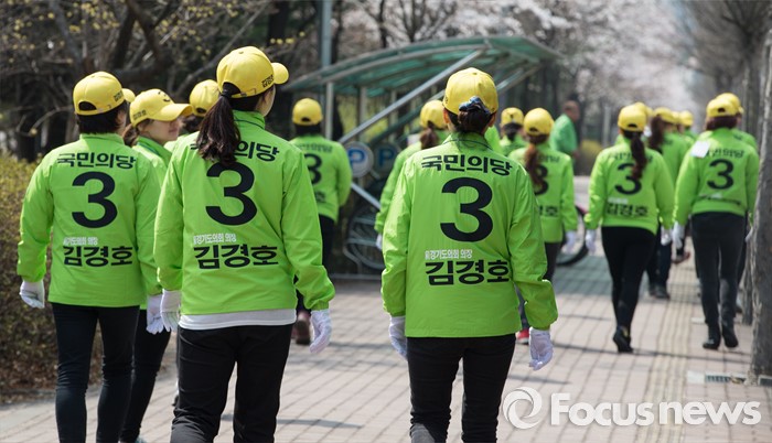 (의정부=포커스뉴스) 국민의당 선거운동원들이 5일 오후 의정부시 금오동에서 정희영 의정부을 후보 선거운동을 마친 후 다른 장소로 이동하고 있다.