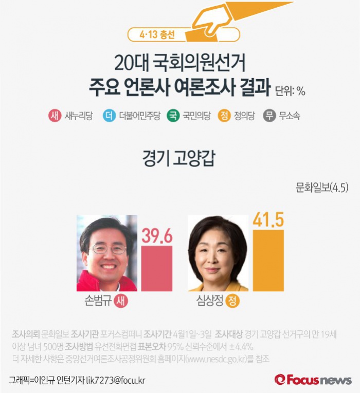 [그래픽] 4·13총선 경기 고양갑 여론조사결과