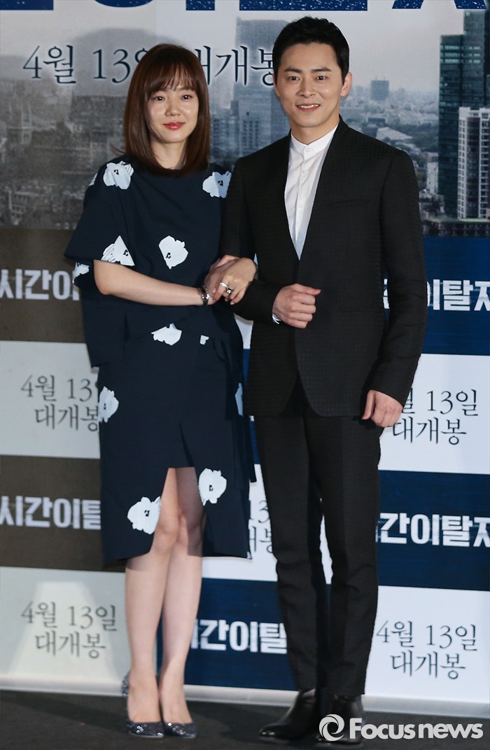 (서울=포커스뉴스) 5일 오후 서울 성동구 왕십리 CGV에서 열린 영화 '시간이탈자' 언론시사회에 참석한 배우 임수정(왼쪽)과 조정석이 포토타임을 갖고 있다.