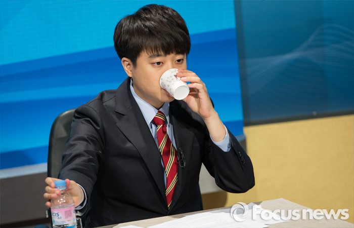 (서울=포커스뉴스) 이준석 새누리당 노원병 후보가 5일 오후 노원구 인덕대학에서 열린 '노원후보자 TV토론회' 시작에 앞서 물을 마시고 있다.